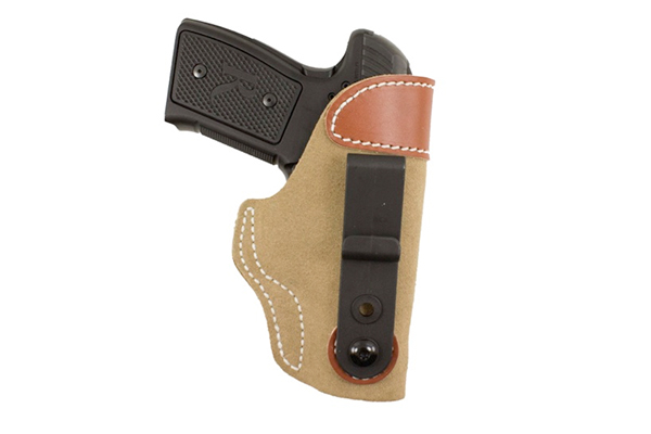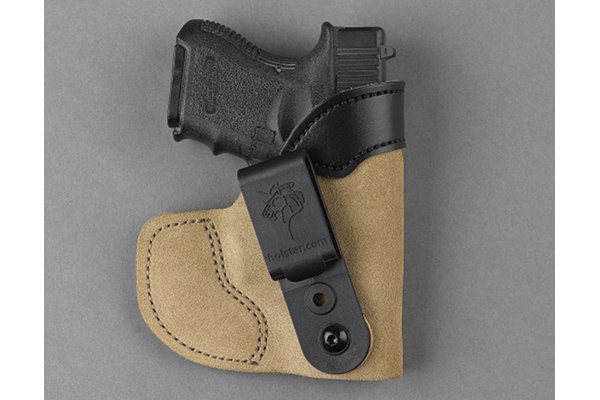This is an IWB/Tuck-able holster with a tuckable 360-degree clip. It can be worn strong side, cross draw, or on the small of the back.  It is built from soft, no-slip suede and reinforced at the top with premium saddle leather to aid in re-holstering. The Sof-Tuck retails for $29.99.