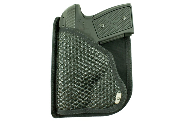 An even stickier rubberized fabric makes this pocket holster even more viscous than the Nemesis. It also comes with a removable, reversible outer flap to even further disguise the firearm. This pocket holster will absolutely not move out of position in your pocket. The inside is made of slick pack cloth for a low friction draw and is reinforced with added polymer in the right places. The Super Fly retails for $38.99.