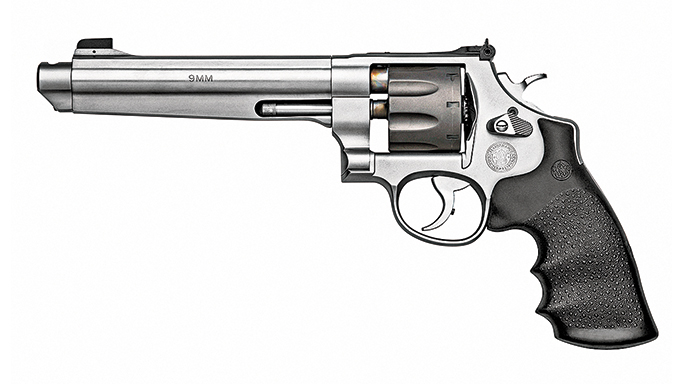 When you combine an old-world-style design with modern-day augmentations you get the Performance Center Model 986. 9mm fans will appreciate this seven-shooter revolver with smooth operation in both double- and single-action. The stainless steel frame dampens recoil and the compact size makes it R an excellent choice as a concealed-carry sidearm.