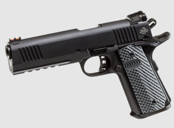 The Rock Island Armory TAC Ultra FS offers a full tactical rail for accessories. It’s constructed of 4140 Ordnance steel for optimal durability. The 5″ button rifled barrel is bolstered by a full-length guide rod and full dust cover. The TAC Ultra FS includes a low profile adjustable rear sight and high visibility fiber optic front sight. There’s also a skeletonized hammer and trigger with an adjustable over-travel stop. The hardware is finished with a strong parkerized matte coating to withstand round after round of shooting. Lastly, the G10 tactical grips offer a secure hold – a must for any 10mm.