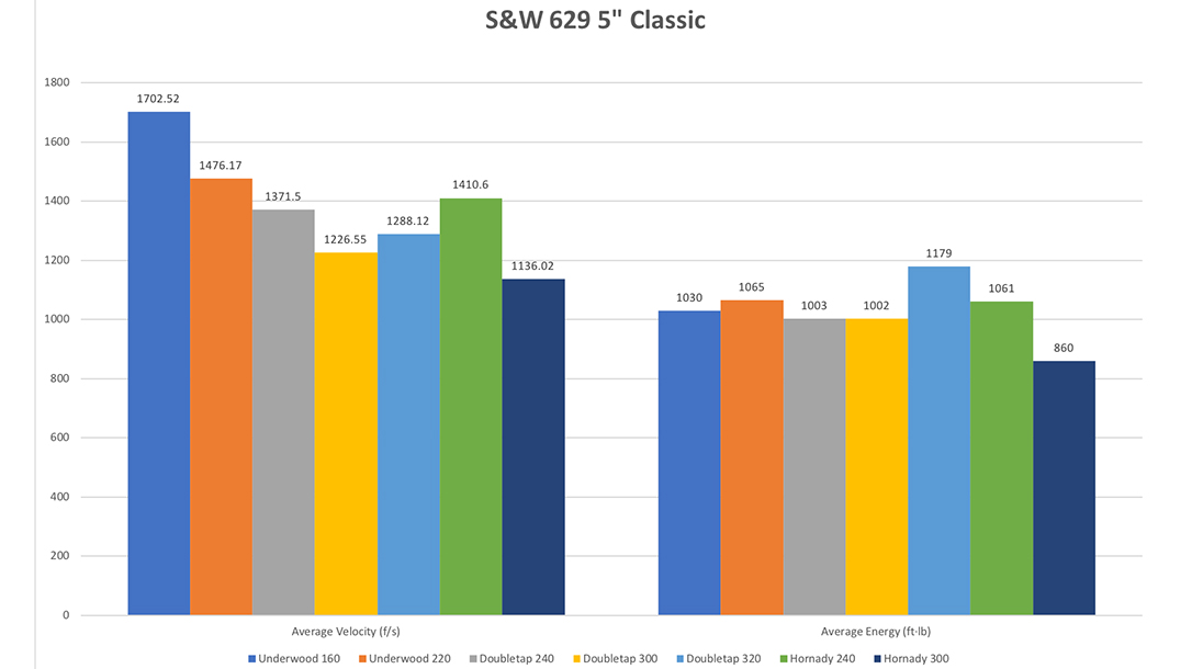 The .44 Magnum chronograph session was a bit more kinetic. These rounds can be punishing after a long-range session. The accompanying table shows what a 5-inch barrel was capable of with the rounds I gathered.