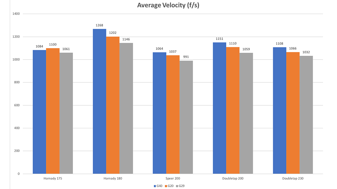 I wanted to see how much velocity is lost in using a shorter barrel, so I ran the same ammo through the Glock 20, Glock 29 and Glock 40. In the end, it became apparent that the 6-inch barrel on the Glock 40 makes it a great option for hunting, not just self-defense. You get every bit of velocity possible with the longer barrel. You also get the added benefit of more weight hanging out front, which helps counter some of the recoil.