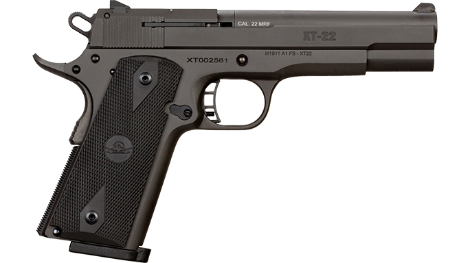 It’s the first in a carefully designed 1911 and packs the powerful 22 magnum cartridge with a 14-round capacity. Engineered with a pinned, solid state 5″ barrel with delayed blow back slide and our crisp, factory 4- to 6-pound trigger to offer match class accuracy and power.