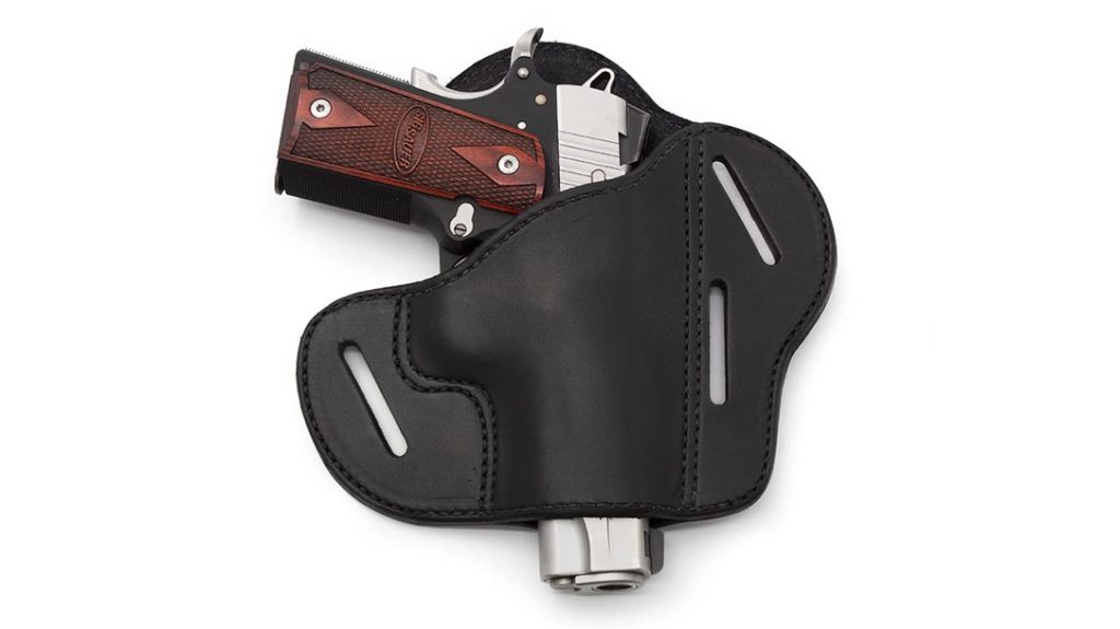 Featuring an open muzzle design, the holster accommodates a variety of slide lengths, ensuring a good fit for your 1911. In addition, the 3-slot design of the pancake-style holster allows you to adjust your cant for easy access. Correspondingly, this also allows for cross-draw or behind-the-hip carry.