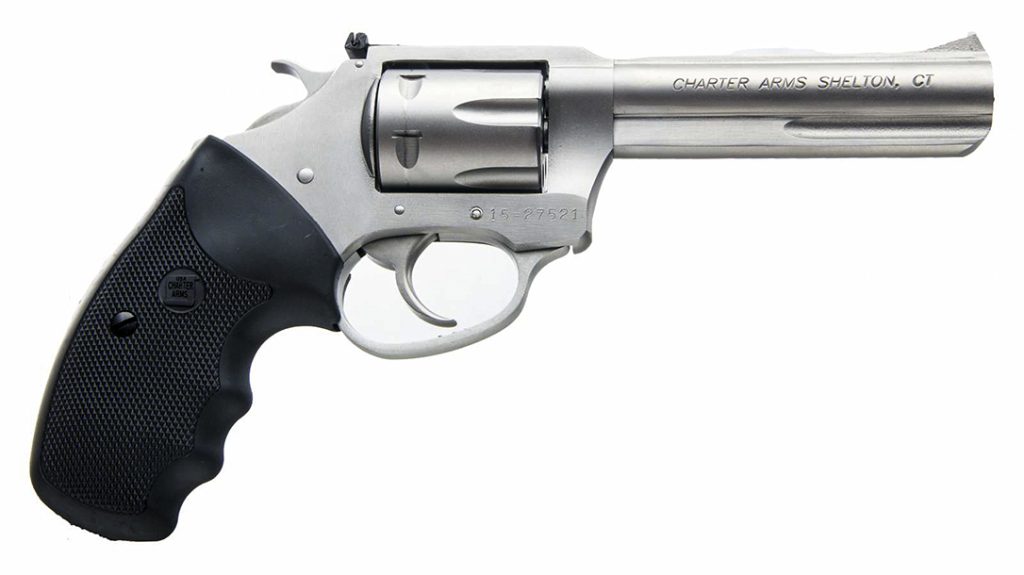 The .22 Pathfinder can turn a few tin cans into an afternoon of fun. As with other 22s, it is equally effective at eliminating pests. Its stainless finish with black rubber grips with finger grooves rounds out the overall aesthetic. (charterarms.com)