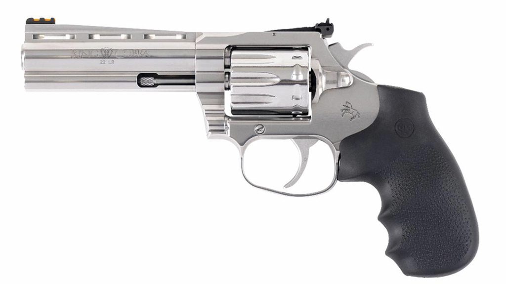 One of the most iconic revolvers of all time is the Colt Python. In fact, their entire line of “snake” guns is considered the gold standard of wheelguns. Well, the snake lovers now have a new gun to add to the collection. Colt has launched the King Cobra Target .22 LR, bringing a competition, plinking and game-getting revolver to the market. The King Cobra Target packs 10 rounds of .22 LR into its cylinder. The gun fits a variety of applications and is equally capable on the farm or in competition The one-piece stainless steel barrel delivers accuracy as well, according to Colt. It comes topped with an adjustable target rear sight and fiber-optic front sight and is fitted with Hogue overmolded rubber grips. The King Cobra Target in .22 LR comes fitted with either a 4- or 6-inch barrel and has the classic stainless finish. (colt.com)