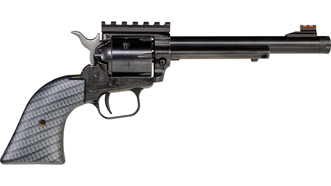 Heritage says it best when they said, ”For making tin cans dance in the backyard, pinging steel, or controlling pests and varmints around the farm, nothing beats the low-cost, high-adrenaline thrill of a single-action rimfire revolver.” Heritage Rough Rider Tactical Cowboy fits that role perfectly. While chambered in .22 LR, it is also compatible with the .22 WMR cylinder, allowing you to shoot either .22 LR or .22 WMR ammo. The new Heritage Rough Rider Tactical Cowboy features modern-day technology into an old classic world design. The barrel is threaded for accessories like compensators and suppressors. The Picatinny rail allows the user to add different optics if desired but also works as a rear open sight to be used with the bright front fiber-optic sight. (heritagemfg.com)