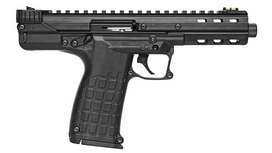 KelTec felt the .22 market needed an update, so they released the CP33. CP stands for Competition Pistol, and 33 because it holds a staggering 33 rounds in the magazine. Equipped with a Picatinny-style top rail and a Magpul M-Lok slot built into the dust cover, the CP33 is ready to accept your favorite optics and accessories. Train, compete, plink and repeat. If you’d like to do it quietly, simply attach your favorite .22 suppressor. As ambidextrous as this handgun can be, the CP33 offers a safety lever on both sides of the grip, a heel catch magazine release and a unique charging handle located at the back of the receiver. Adjustable fiber-optic sights, a 9-inch sight radius and threaded barrel come standard, making short work of bullseyes and other targets. (keltecweapons.com)