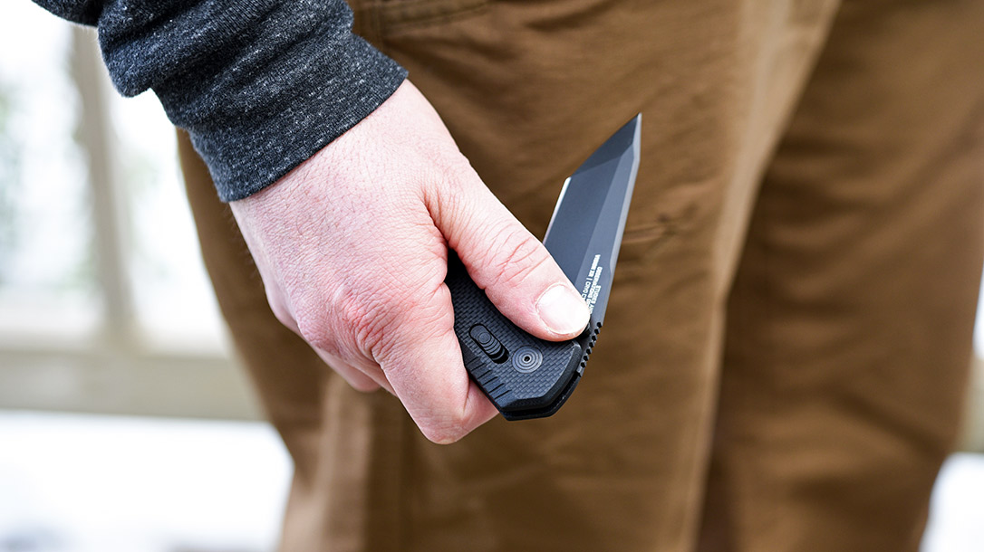 Another important feature I look for is a strong locking mechanism on a folding blade. I don’t ever want to do damage to myself with my own blade. If a blade lock fails, it could literally take you out of the fight. Worse, it can cause extreme damage to your hand.