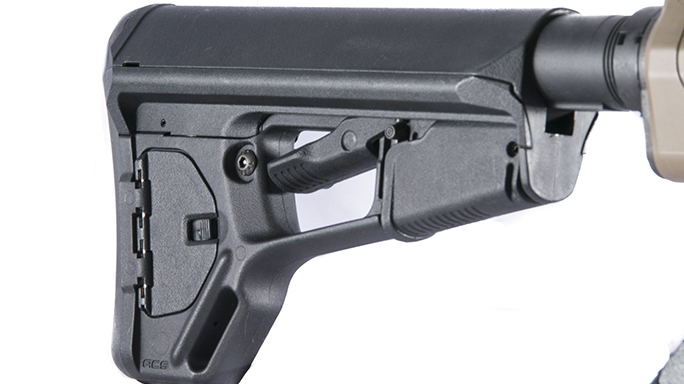 Magpul ACS-L: As a general rule, anything shorter than a 16-inch barrel/carbine-length gas system combo will require tuning to function with standard-pressure ammo. The recoil impulse from a .308 out of a short barrel is just too violent for the buffer assembly to keep up with. Symptoms of this normally include ejected casings turned 180 degrees inside the chamber, or simply a stuck chamber because the bolt traveled too quickly to throw the shell out the ejection port.