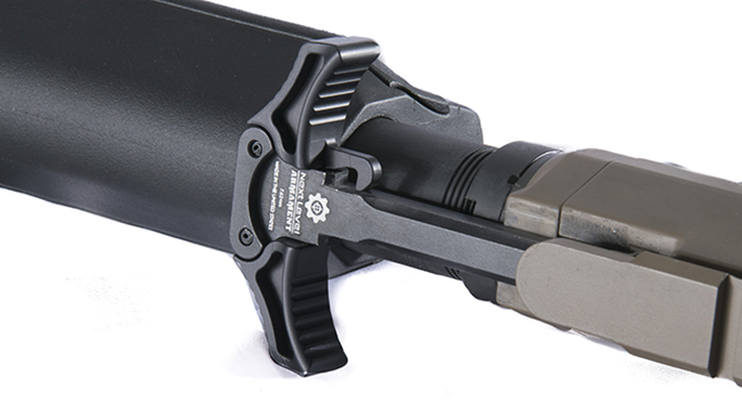One of the most generously sized latches on the market is the Next Level Armament NLX 308. This fully ambidextrous charging handle resembles a battle axe, and it’s nearly bomb-proof in its construction. The handles themselves are heavily textured to prevent a shooter’s hands from slipping when wet or oily. In terms of pure ergonomics, this upgrade goes the furthest in improving the handling of any stock .308 AR.