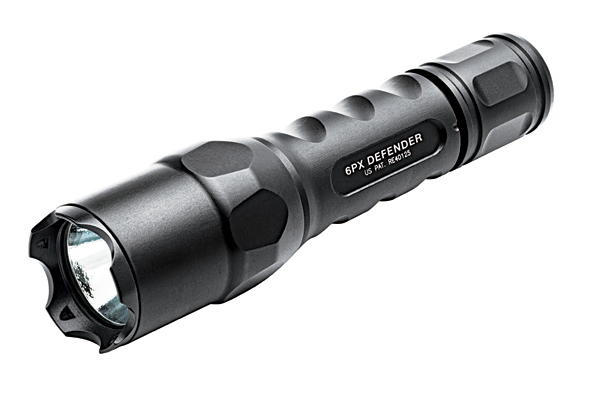 Compact Options The M4 and R2 are large but not hard to carry. However, a smaller flashlight package can be a perfect compromise. The SureFire 6PX Defender offers a bezel diameter of 1.25 inches and a length of 5.4 inches, and packs a maximum white light output of 320 lumens. The tailcap switch is pressed once for momentary on; press it again for constant on, and press it a third time to it off. The 6PX Defender has a crenellated Strike Bezel, similar to a scalloped-edge bezel.
