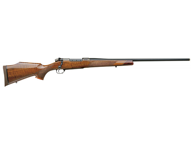 First, you start out with roughly 50 cartridge choices, which can be anything from the petite .17 Rem Fireball upwards to the larger Magnum offerings like the .458 Win. You can choose a barrel length from 16 inches to 30 inches, right- or left-handed, iron sighted or clean. Metal finish can be bright or subdued, and the wood goes from Claro, American or English walnut. Classic or modern stock designs are there for the asking, forend tips in rosewood or ebony and the grip cap can be stylized to include rosewood, ebony, solid steel or even a skeletonized cap. Finish can be gloss or oil, and you can order a traditional buttpad in “Old English” or a skeleton-type plate. Length of pull is up to you, and you can even have a nameplate with your initials inscribed.