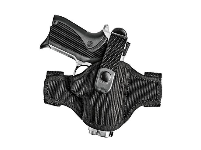 BIANCHI: Bianchi also has concealable holsters for railed 1911s. Its minimalistic 7506 Thumbsnap Belt Slide made of AccuMold ballistic weave. It features dual snap belt loops for a convenient, quick release without belt removal. (http://www.safariland.com; 800-347-1200)