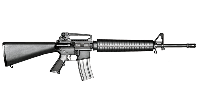 The Model 4 offers traditional A2 style through and through. Set up like a traditional civilian version of the M16A2 with a removable carry handle and an adjustable rear sight, an A2-style adjustable front sight, an A2 pistol grip and buttstock, a round polymer handguard and a two-stage, mil-spec trigger. A 20-inch, heavy-profile barrel is also employed, making the Model 4 an excellent choice for service rifle competition.