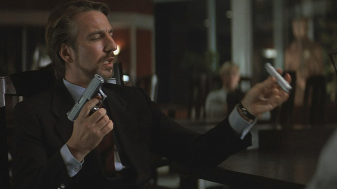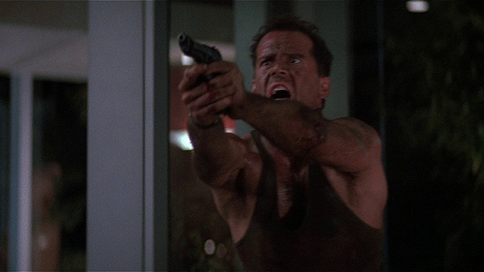 Throughout the film, the terrorists, led by Hans Gruber (Alan Rickman), showcase an impressive arsenal that scene-by-scene destroy different parts of Nakatomi Plaza.