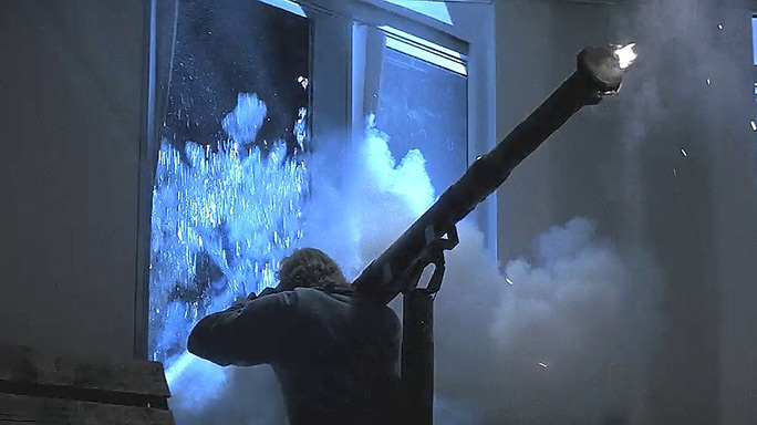 A big moment in the movie, the terrorists bring out some seriously big guns. A big ol’ rocket launcher and tripod proved too much for SWAT. It sure didn’t look good for McClane at this point.
