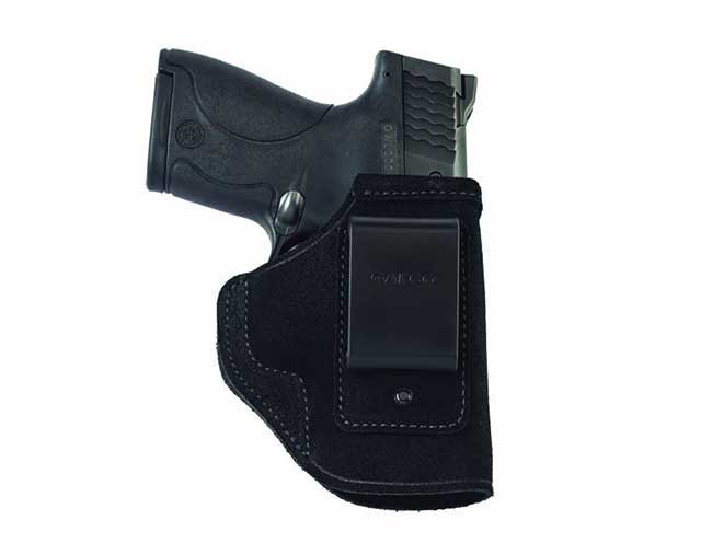 For standard IWB carry, there are many popular options. PJ Holster makes a great line of IWB Kydex holsters for many pistols and in several different configurations. Kydex is very thin and light compared to a leather holster. It provides great retention, is sweat proof, and stays open while the pistol is drawn, allowing for easy reholstering. At $55 for a holster built to handle a laser-equipped gun, these designs are more expensive than some other holster options, but quality Kydex doesn’t come cheap. (pjholster.com)