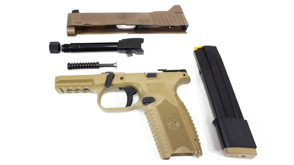 The DNA of the 509 series is based on the Military Modular Handgun program. In 2011, FN took the primary design and features of that design and carried them over to the 509. The gun meets combat standards, requiring 90 percent accuracy inside a 4-inch circle out to 50 meters. FN also tested this design by running over one million rounds through it. Most of those rounds were +P, adding more pressure and fatigue to the gun. It passed with flying colors.
