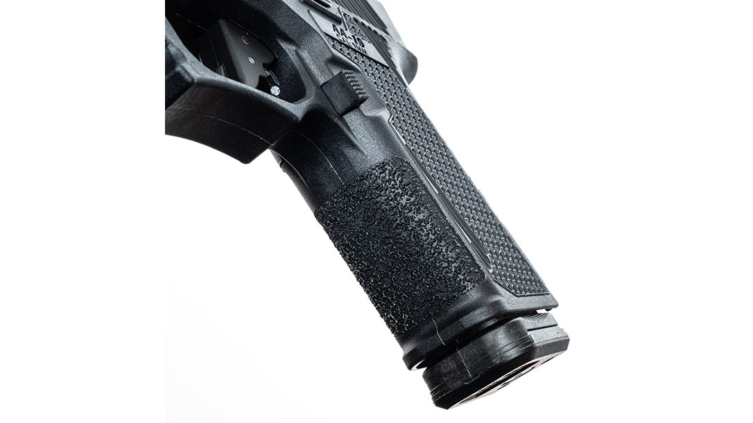 Moving back down to the frame, the AA19 has an integrated Picatinny rail for running your favorite accessories. Additionally, the frame wears very effective texturing on the front and backstraps and a more subdued pattern on the sides of the grip. Honestly, I would have preferred the backstrap texturing around the entire grip rather than Adams’ signature pattern on the sides.