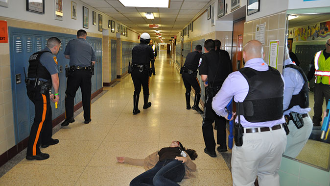 If an active shooter incident happens, it quickly becomes larger than just a police matter, which became apparent during the drill as representatives from the school district, fire department, other police departments, and emergency medical units were on hand.