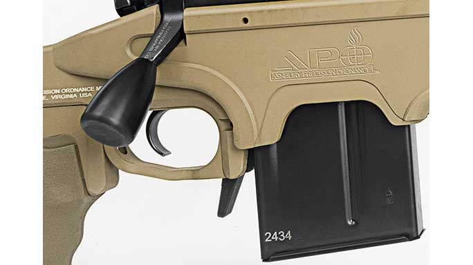 The barrel and receiver both feature a perfect, non-reflective DuraCoat finish. AdeQ also installs a Badger Ordnance bolt knob that looks good and enhances bolt manipulations. A good precision rifle also needs a good trigger, and the Interceptor’s is a nice one. AdeQ has installed a Timney trigger that is adjustable from 1.5 to 4 pounds. My test rifle’s trigger came set at 4 pounds. The Timney unit includes an improved thumb safety that blocks the trigger, not the sear.