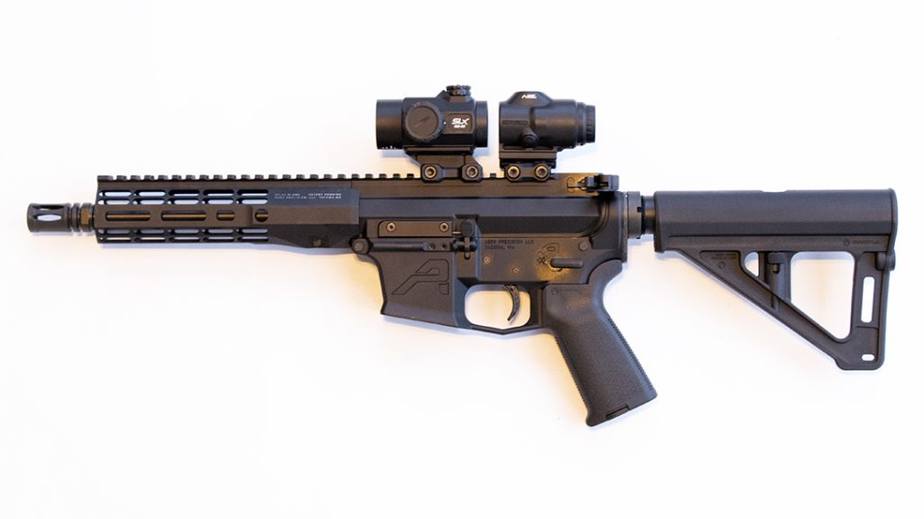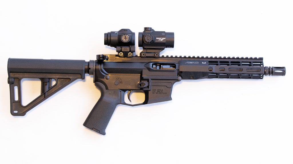 The forged receiver set serves as a strong foundation for the rest of your EPC AR build. The user can choose between four different barrel lengths for their pistol—16-, 11-, 8.3- and 5.5-inch barrels. I chose to use the 8.3-inch barrel. My thought process was that I could see how the gun could perform as a truck, backpack or home-defense gun. The EPC is a worthwhile investment for your defensive needs because it offers a lot of abilities that a conventional pistol does not offer, such as an increased hit probability, longer effective distance, increased terminal ballistics due to a longer barrel, and M-Lok for accessories like lasers and sights.