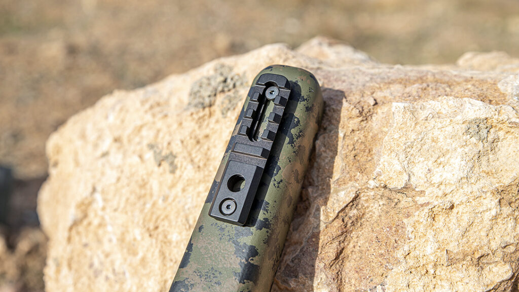The Alpine Hunter came with a pic rail up front with an integral QD stud. Of the two I prefer the comb height and overall shape of this stock, but the Visigoth incorporates a great palm swell in the grip area, easily accepts my detachable padded cheek rest from FTW, and features dual bipod studs at the front of the forend. The stocks came in different camo patterns, Prairie Terrain Camo, and Dark Timber Terrain Camo, respectively. AG has an extensive list of camo patters for you to choose from, so you’re sure to find something you like. Other items on these evaluation samples included a 1-inch Pachmeyer Decelerator pad and excellent excellent M5 bottom metal designed by AG Composites.