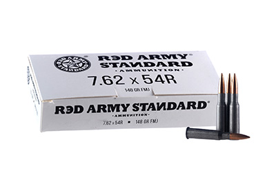 Century Arms manufactures and imports many AK variants, and the company also imports economical ammunition made in various Eastern European military factories under the Red Army Standard name. Several rifle loadings are available: 148-grain 7.62x54R loads with traditional FMJs and copper-jacket FMJs and 7.62x39mm with 122-grain FMJ. These rounds feature non-corrosive primers and lead-core bullets. Like traditional military ammo from Eastern Europe, these cartridges have lacquered steel cases and Berdan primers so you can’t reload them. For more information, visit https://www.centuryarms.com/red-army-standard