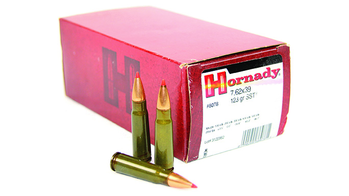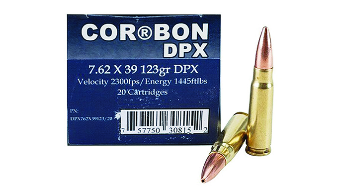 CorBon makes precision ammunition for self-defense and hunting. The company’s offering in 7.62x39mm is a 123-grain load that pushes CorBon’s solid-copper DPX (Deep Penetrating X-panding) projectile to a velocity of 2,300 fps. Using a solid bullet negates concerns over slug separation (maintaining 100 percent bullet weight) and ensures deeper penetration for hunting or self-defense. This design also offers very reliable expansion with a polymer tip for an enhanced ballistic coefficient (BC). For more information, visit https://www.corbon.com