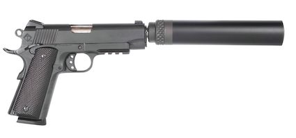 The .578×28 RH threaded barrel will be compatible with most 45ACP suppressors. The gun has a steel frame with blued finish and weighs 39.9 oz. The FX45-K also features an ambidextrous manual safety, grip safety and locked breech. It has drift adjustable target sights, external hammer and target trigger.
