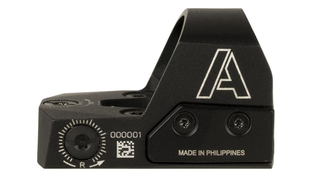 The Haven features 11 brightness settings, including two night-vision compatible options. Featuring a proprietary Carry-Loc mode, the optic fixes the illumination at the user’s setting, preventing unintentional button presses. The 3.5 or 5.0 MOA red dot is adjustable for windage and elevation at 1 click per 1 MOA. Likewise, the red dot has an adjustment range of +/- 45 MOA.