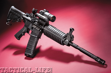 The AM-15M416’s M4-contour barrel and light weight makes it an ideal patrol carbine. It also features a RF85 treatment that reduces friction without the need for any lubricant. Primary Arm’s Micro Dot (Gen 2) and their Ultimate Weapon Light was mounted to the carbine.