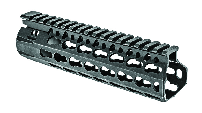 BCM KMR-A Handguards: The KeyMod Rail-Alpha (KMR-A) handguards from Bravo Company Manufacturing (BCM) are made of 100-percent aluminum so they are lightweight and rugged. BCM’s proprietary mount minimizes handguard movement under extensive fire. KMR-A handguards are available in various lengths, and they’re hardcoat anodized to resist corrosion. KeyMod slots are cut into seven of the sides while the top is left as a sturdy, full-length Picatinny rail.