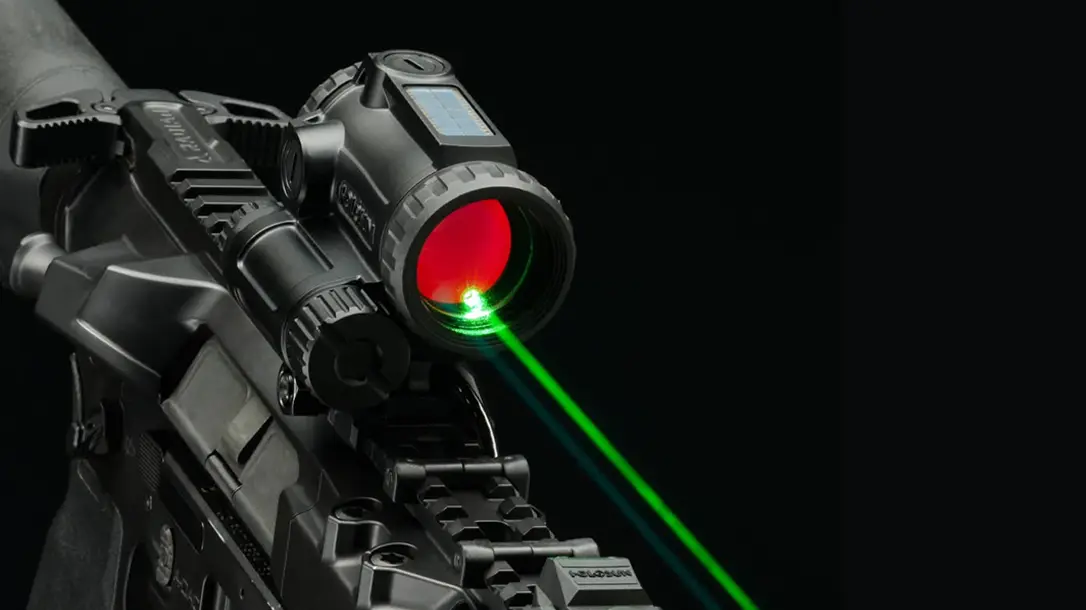 At the center of the sight is Holosun’s selectable 2 MOA dot and 65 MOA circle-dot reticle. This provides shooters with a fast, intuitive reference point for close-range work. It also offers a clean dot for more precise shots at distance. Integrated visible green and IR lasers extend the system’s usefulness into low-light and night-vision applications. They provide aiming options when environmental conditions or shooting positions may compromise optical sighting. Whether transitioning through tight interior spaces or illuminating targets under NODs, the ARO-EVO DUAL delivers consistent performance. It works in conditions where a standard red dot alone may be limiting, including when working around barricades.