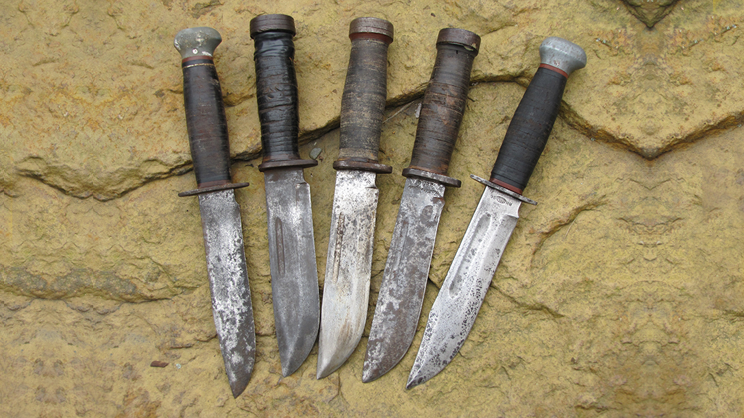 World War I found military-issued knives in the form of bolos and knuckle knives with spikes for blades, which were well suited for trench warfare but not so for woods work. World War II finally brought GI-issued knives that were useful for the day-to-day challenges of living in the woods, fields and jungles that were the battlefields.
