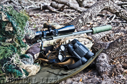 Let us not forget that a suppressor is an accessory that relies on a high-performance platform in order to do its work. Our test rifle, the Tactical Rifles M40T7, offered a solid, reliable, and accurate platform from which to test the Thundertrap’s effectiveness. At the heart of the M40T7 is the proprietary Chimera action, a dual opposing-lug bolt-action design that incorporates the precision tolerances of a bench-rest rifle with the reliability and durability that tactical shooters demand. The action features an oversized bolt handle, attractive and functional spiral fluting on the bolt body, and a beefy extractor. The action is pillar-bedded into the T7 stock of Tactical Rifles’ own design, a style that is well-suited to shooting prone or from a sandbag rest. The stock’s forend is sloped vertically to allow a shooter to make incremental elevation changes by sliding the rifle forward or to the rear on a rest. All metal work is coated in a corrosion-resistant “hostile environment” finish and the stock has been hydro-dipped in a Multicam pattern. Truly a custom rifle builder, the team at Tactical Rifles will create and build a firearm to a customer’s exact specifications.