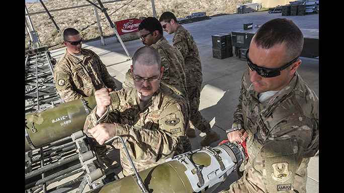 In just over a month, Rintelmann’s team has built, inspected or rebuilt more than 60 GBU-54 500-pound bombs, and the pilots have dropped them with a perfect 100-percent detonation rate.