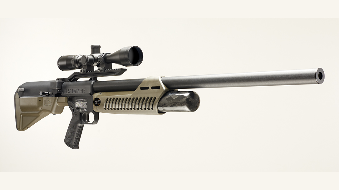 The long-anticipated Hammer is an American-made, regulated PCP in .50 caliber that can deliver over 700 foot-pounds of energy. It is currently the most powerful production airgun on the market. Operating on 4,500 psi stored in the onboard carbon-fiber cylinder, the 2-shot, magazine-fed bolt action can give two full-power shots using up to a 550-grain slug. For more information, UmarexUSA.com.