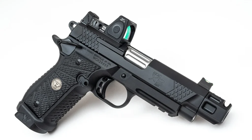 While we’re up there in the price stratosphere, we can go ahead and knock out the Wilson Combat EDC X9 2.0 Comp, which has a price of $3,937 with the optic cut, ambi safety upgrade and the optional magazine well installed. While looking sleek and sexy, the EDC X9.20 is all business at the same time with its new solid-frame design that wears 1911-style grips for easy customization and a bevy of custom components. Built completely in-house, the EDC X9 2.0 is a Single Action Only pistol that borrows heavily from the 1911 for its design cues and operating system.