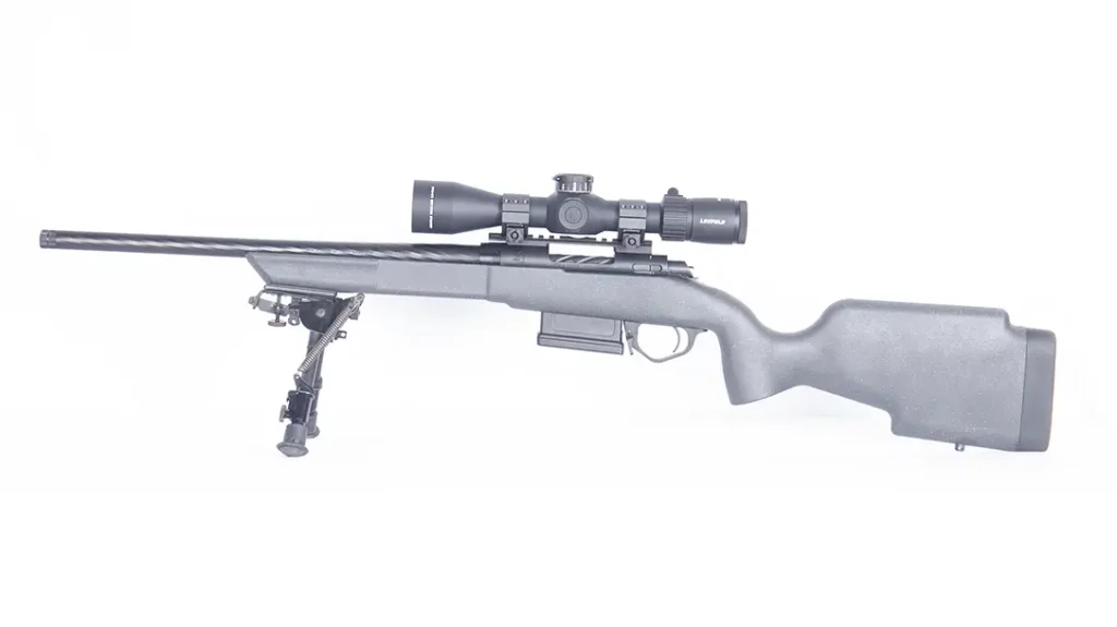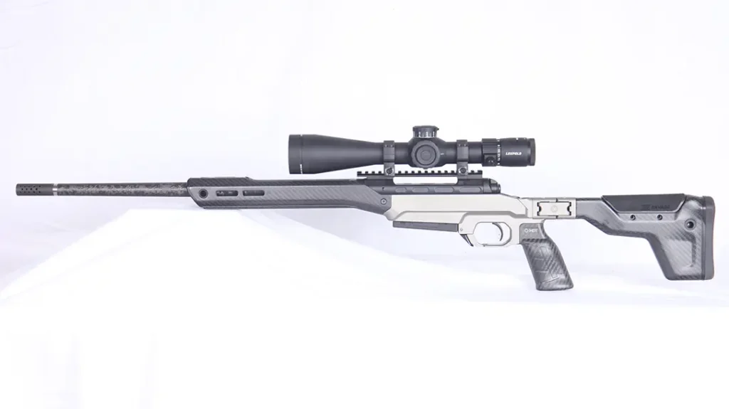 Christensen’s MCR utilizes a Remington 700-style action topped with an optic-ready 20-MOA Picatinny rail. It features a skeletonized bolt handle with an FFT carbon fiber bolt knob, too.
