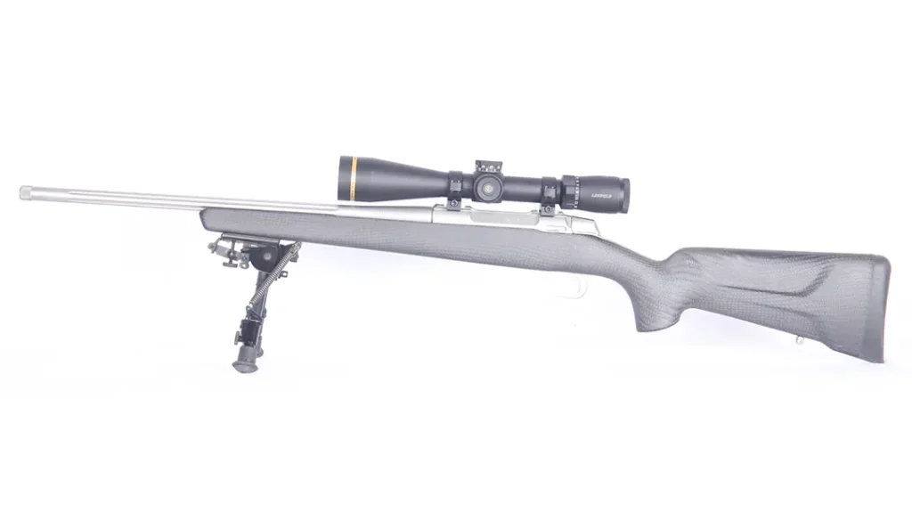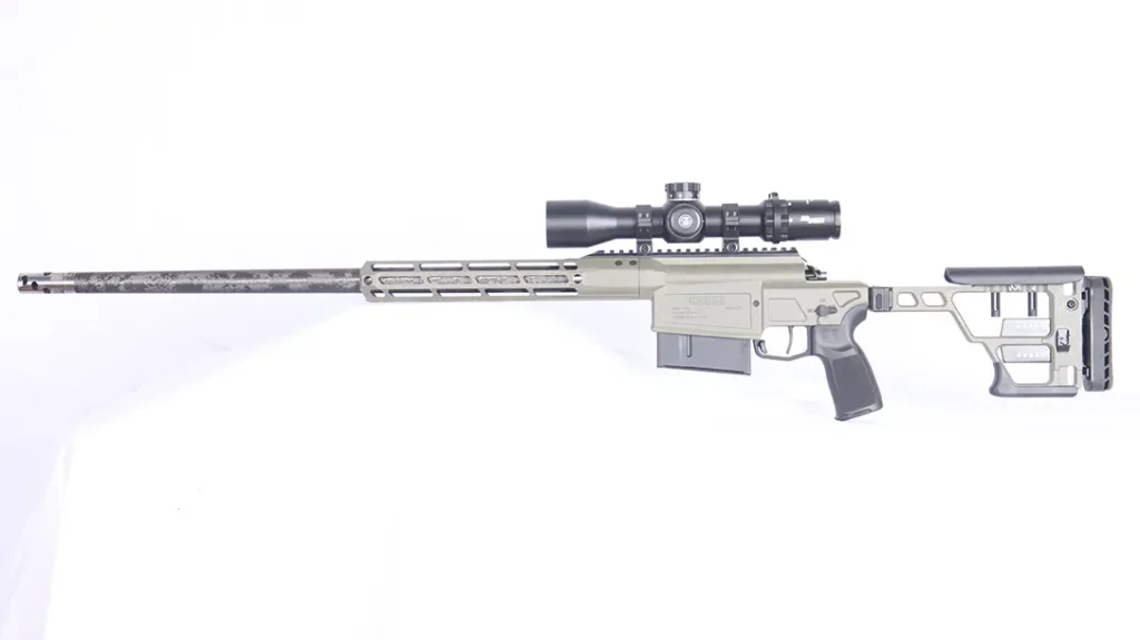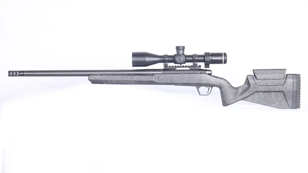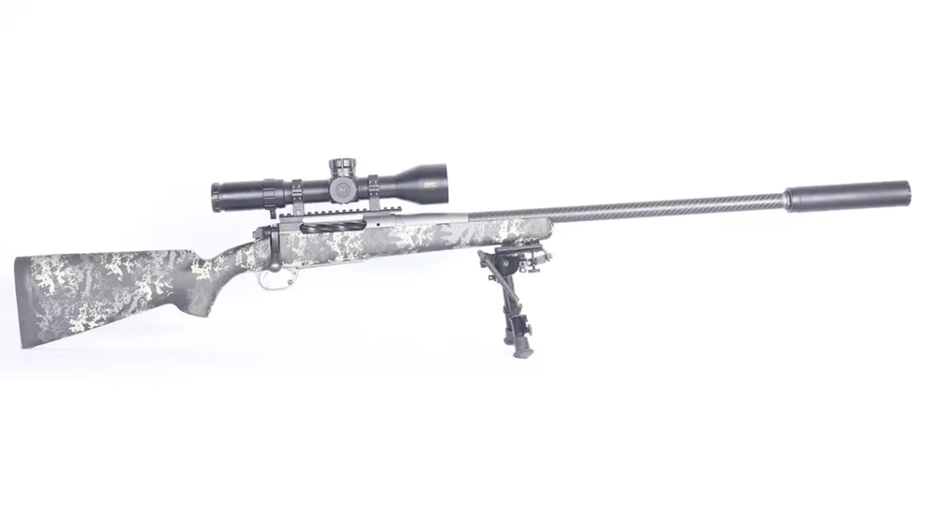 Christensen’s MCR utilizes a Remington 700-style action topped with an optic-ready 20-MOA Picatinny rail. It features a skeletonized bolt handle with an FFT carbon fiber bolt knob, too.