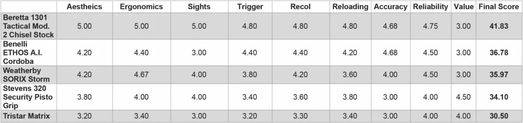 Ballistic’s Best Shotguns Test Scoring