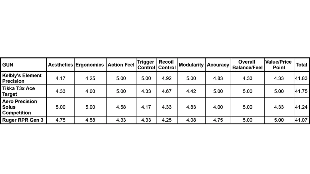 The Solus is getting long in the tooth but not too long. It’s placement and appearance in this match up shows just how phenomenal this rifle truly is. Aero has a real winner on their hands and with some massaging and refinement it could be a world class rifle much like Tikka’s are.