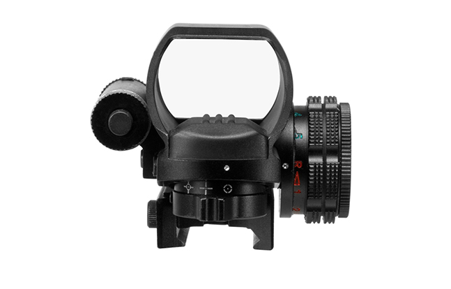 The Multi Reticle Electro Sight Scope also features adjustable brightness for any lighting situation. This 3.5-inch long Electro Sight scope is ideal for close quarters combat situations and allows for quick target acquisition. The laser can be sighted in for close-range targets, while the sight can simultaneously be sighted in to a further distance.