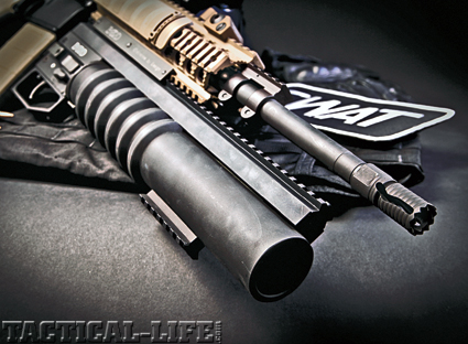 M any cops tend to not be fans of hanging a lot of stuff off their ARs. Eugene Stoner brilliantly designed it as a 6.5-pound rifle for the express purpose of lightening (at the government’s behest) the combat load of the foot soldier. The most they might add to an AR is an optic, tactical light and vertical foregrip. Sometimes a laser sighting system, but that’s it. With this background in mind, you can see that it might take either a lot of convincing, or a really cool accessory for them to boost the weight of an AR they would carry. I have found that really cool accessory in the form of the new Bates & Dittus UBL-37 underbarrel 37mm ordnance launching system.