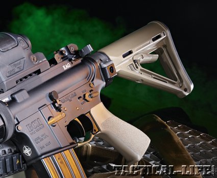 The list of top-notch qualities does not stop with the upper. The lower is machined from the same aluminum forgings and coated same as the upper. The lower is cut for the installation of a full-auto sear assembly for military use. A TangoDown BattleGrip is added to help the shooting hand achieve not only solid contact but also proper trigger finger placement and access to the left-side safety lever. A Magpul MOE Enhanced triggerguard fills the annoying gap just forward of the grip and offers greater room for gloved hands. The USGI H-Buffer is surrounded by a Magpul MOE six-position adjustable rear stock. A TangoDown sling mount rounds out the package. As you can see, BCM has put in the effort to obtain the best accessories available for its carbine so the user won’t have to. This gun is packaged well, but as they say, the proof is in the pudding.