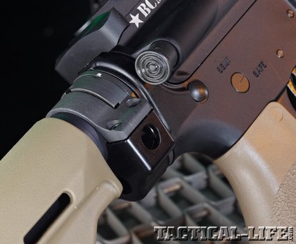 If you are not sure what I mean by “quality,” let me use the EAG Tactical’s upper receiver as an example. The upper itself is machined from a 7075-T6 aluminum forging and is hardcoat anodized per mil-spec 8625F Type III Class 2. The flattop with a Picatinny rail allows for the mounting of varied optics or a standard carry handle. A Troy Industries BCM folding battle sight (back-up iron sight) comes standard on the upper rail. The mid-length gas system, one many knowledgeable shooters believe is the most reliable, is surrounded by a LaRue Tactical 9-inch, free-floated handguard that is also a rail system in itself. These rails are covered by TangoDown SCAR rail covers and come with a TangoDown rail vertical forward grip. The standard charging handle has been replaced with a BCM Gunfighter Model 3 (a handle many feel is the best available) featuring a bolstered T-section and enlarged release lever. The package also includes a SureFire LED white light and a Viking Tactics mount that permits the shooter to use the tail cap switch to activate and extinguish the light.