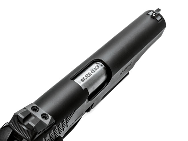Sitting inside the steel slide is a 5-inch, match-grade, stainless steel barrel that’s hand fit and perfectly mated to the bushing. X-TAC serrations sit at the rear for proper use during reloads or press checks. Sitting on top are Wilson Combat’s Battlesights, which include a tritium insert for the front sight. Each pistol is shipped with a test target, a Wilson Combat custom case and three Elite Tactical magazines.