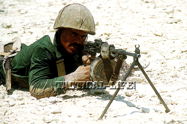 Prior to the introduction of the M249 SAW, the U.S. really didn’t have a light machine gun. The BAR (Browning Automatic Rifle) and the M15 variant of the M14 were attempts to supply an infantry squad with a “faux light machine gun,” while the M60, which served the mission of a light machine gun for many years, was really more of a GPMG (general purpose machine gun), though some lightened versions used by special ops troops such as the M60E3 and M60E4 were more portable. As a result, my first real experiences with the true light machine gun were in foreign weapons training.
